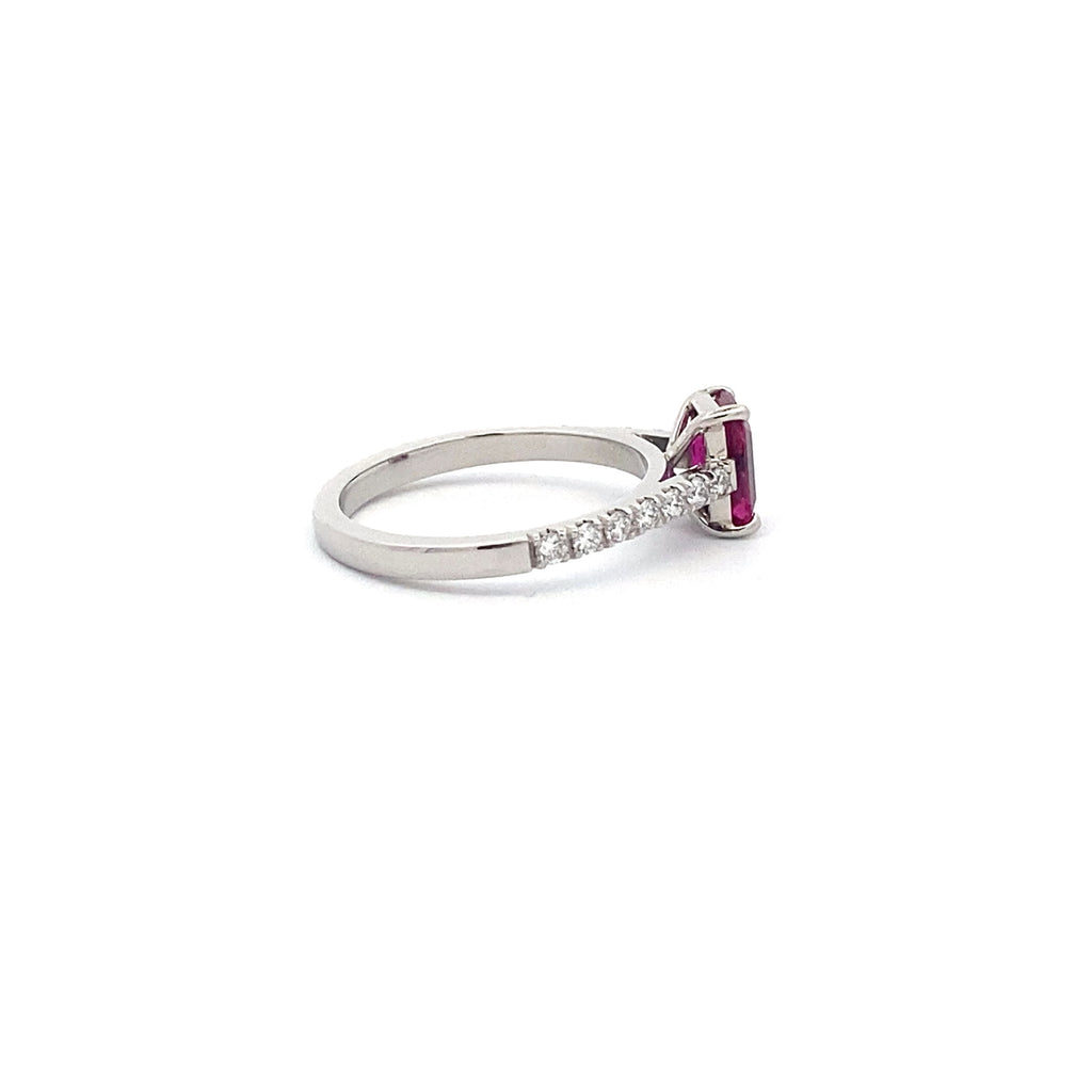 Platinum, Emerald Cut Ruby, Micro Set Shoulder Ring, 1.01ct