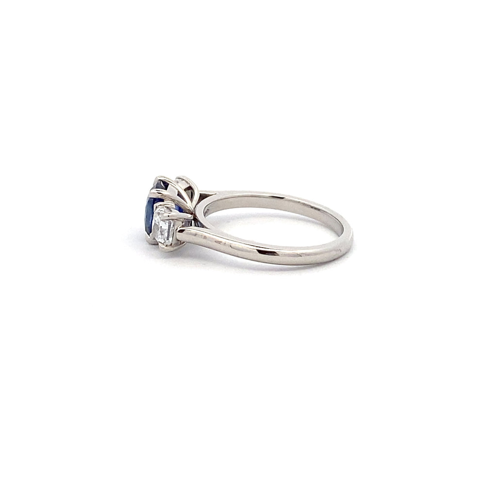 Platinum, Cushion Cut Blue Sapphire, Trilogy Ring, 1.68ct
