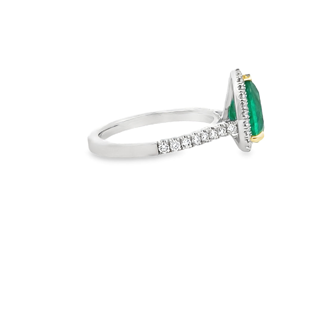18ct Yellow Gold & Platinum, Pear Shape Colombian Emerald, Micro Set Legacy Ring, 1.95ct
