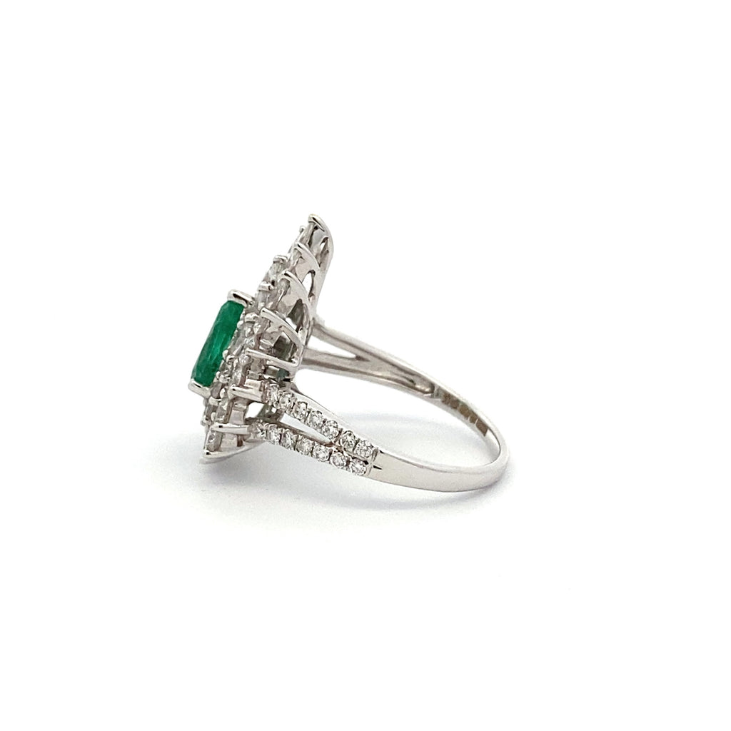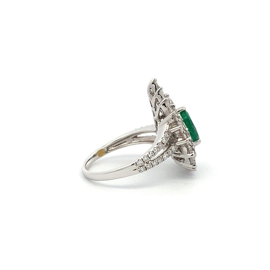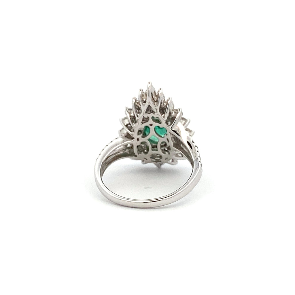 18ct White Gold Pear Shape Emerald Ring, 1.12ct, with 2.10ct Round Brilliant Diamond Split Shoulder Cluster