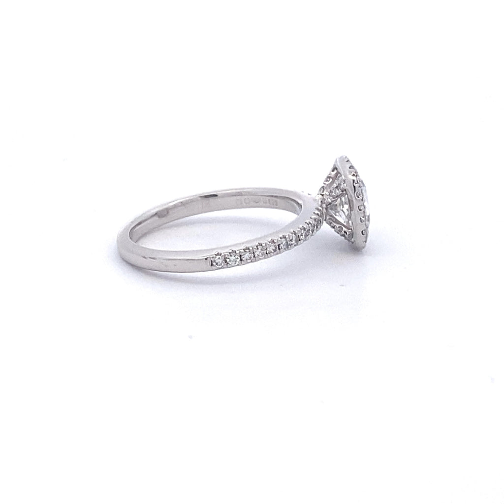 Pre-Owned Cushion Cut 1.06ct E VS2 Platinum 4 Claw Micro Set Halo Ring