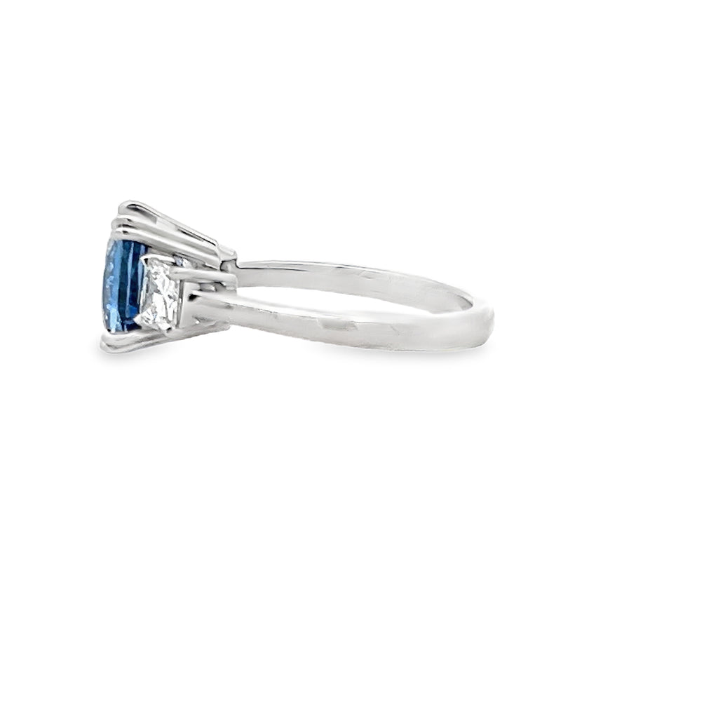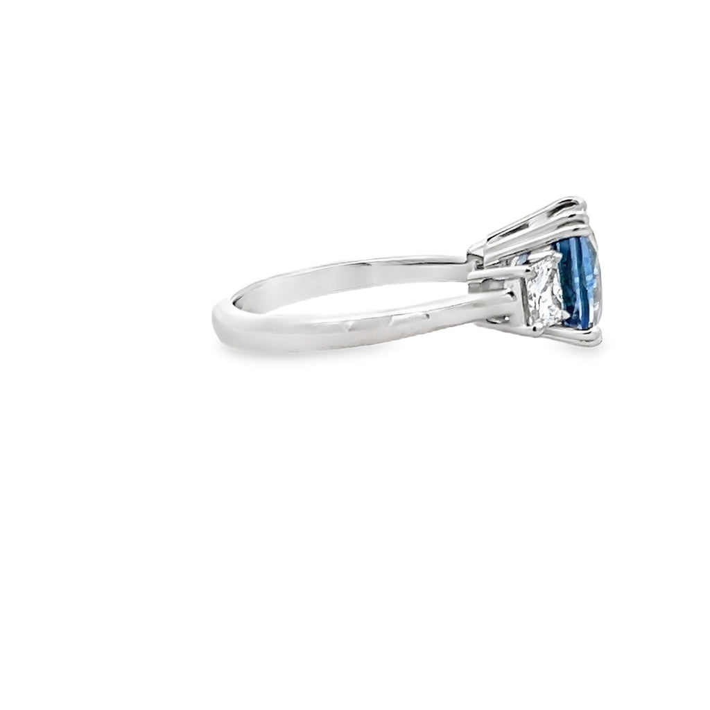 Platinum, Cushion Cut Blue Sapphire, Trilogy Ring, 3.68ct
