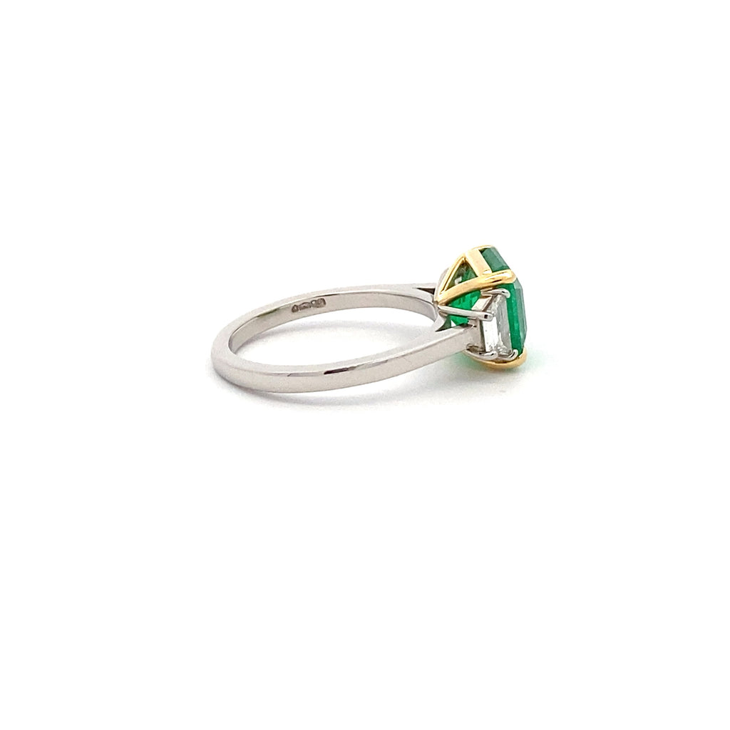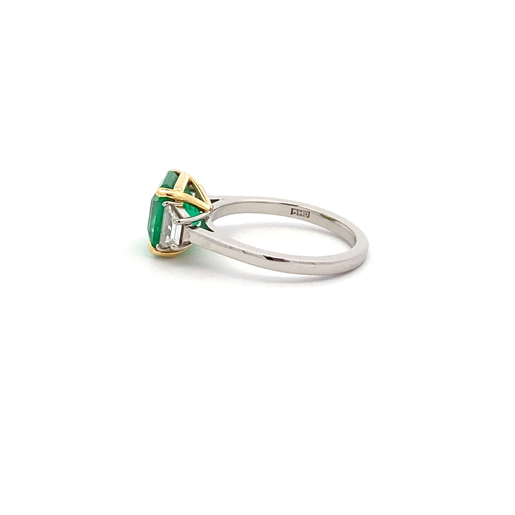 18ct Yellow Gold & Platinum, Asscher Cut Emerald, Trapeze Shoulder Trilogy Ring, 2.53ct