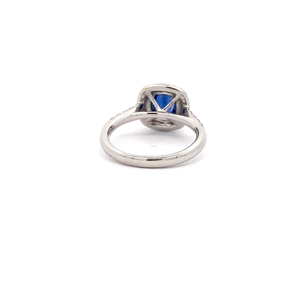Platinum, Cushion Cut Blue Sapphire, Micro Set Legacy Ring, 0.77ct