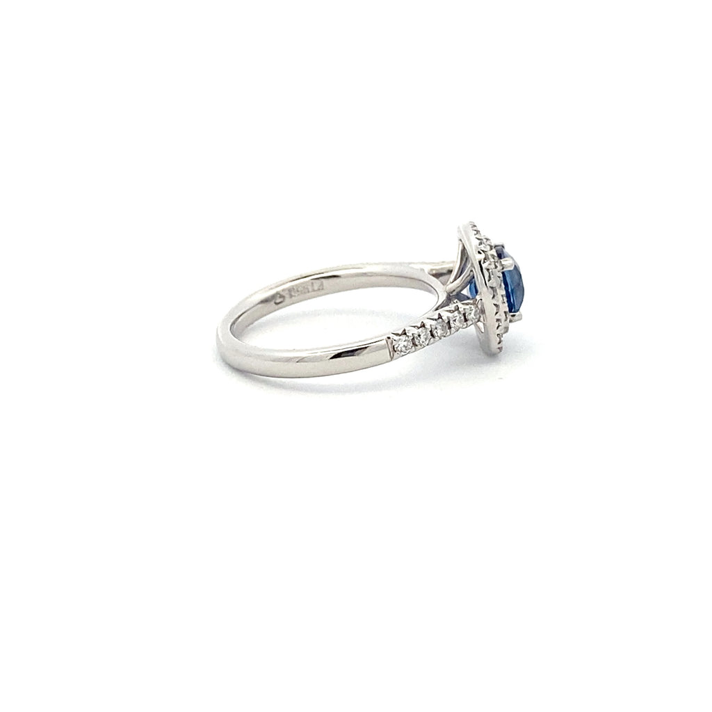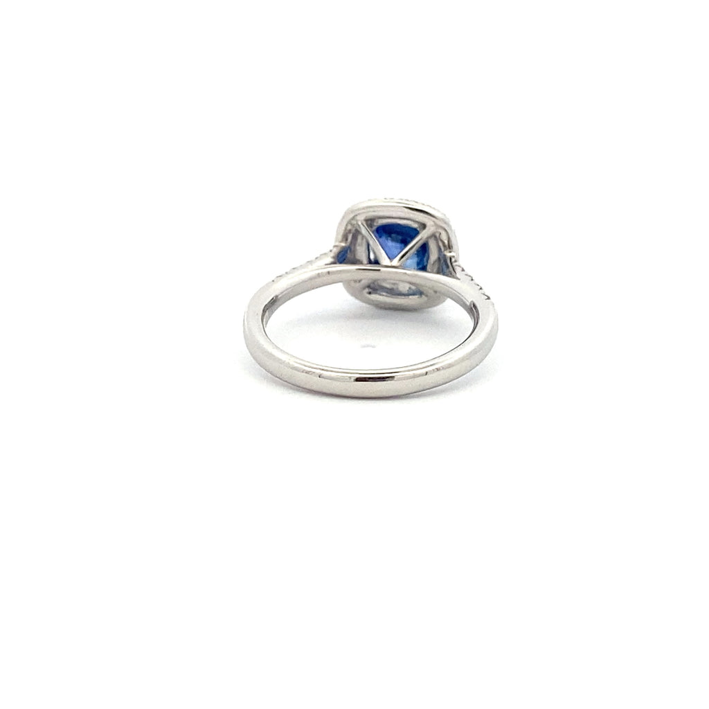 Platinum, Cushion Cut Blue Sapphire, Micro Set Legacy Ring, 1.27ct