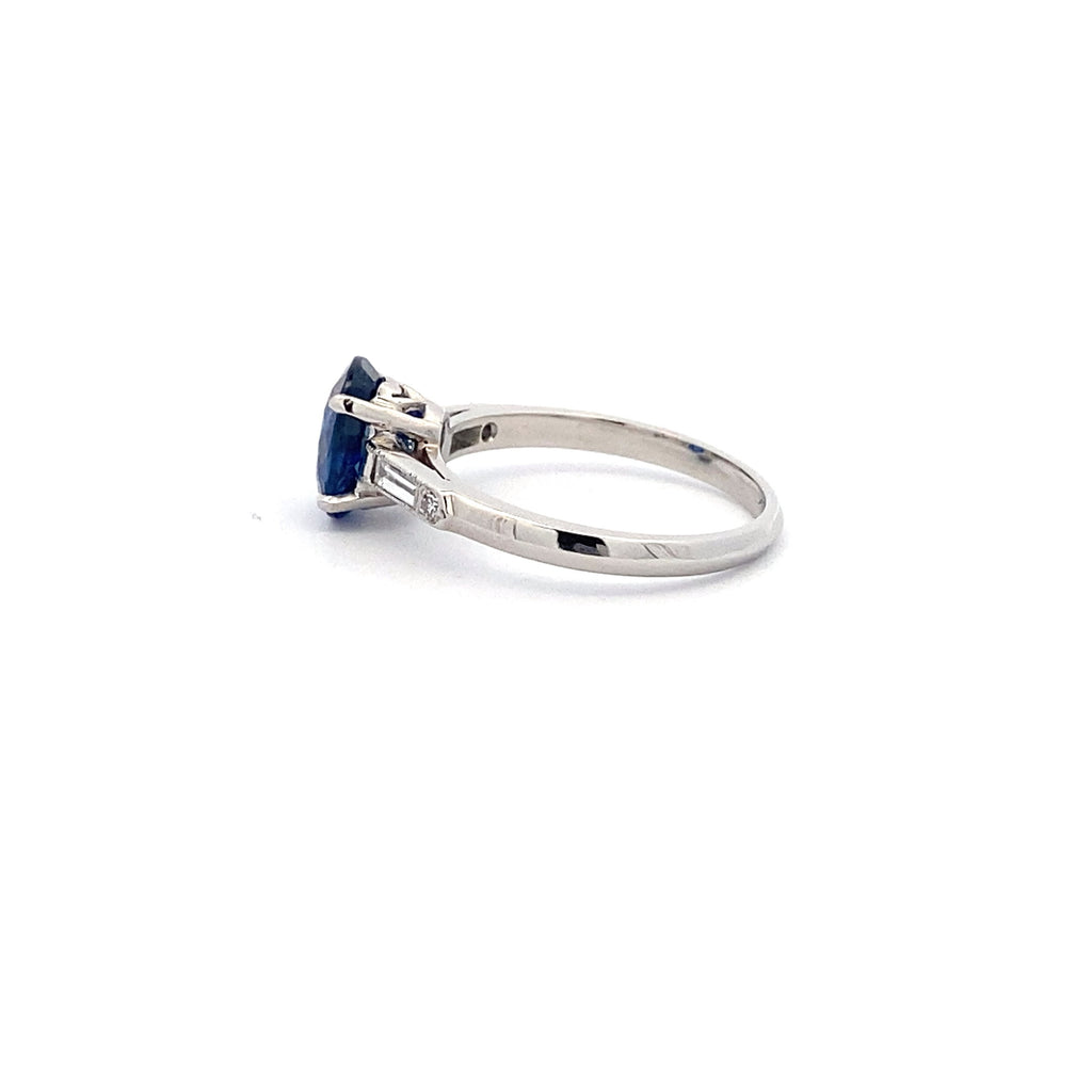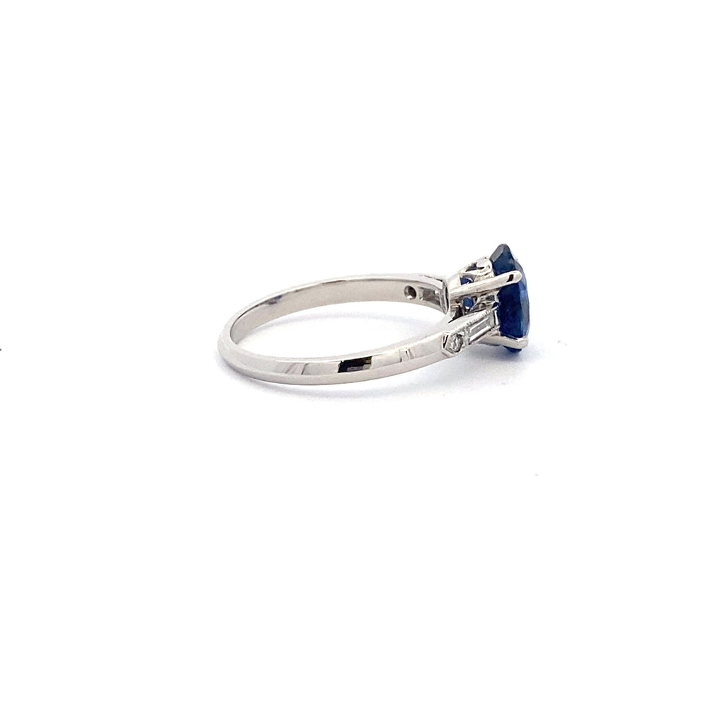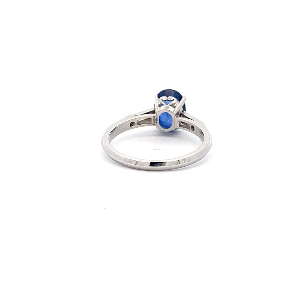 Platinum, Oval Cut Blue Sapphire, Claw and Rubover Set Ring, 2.12ct