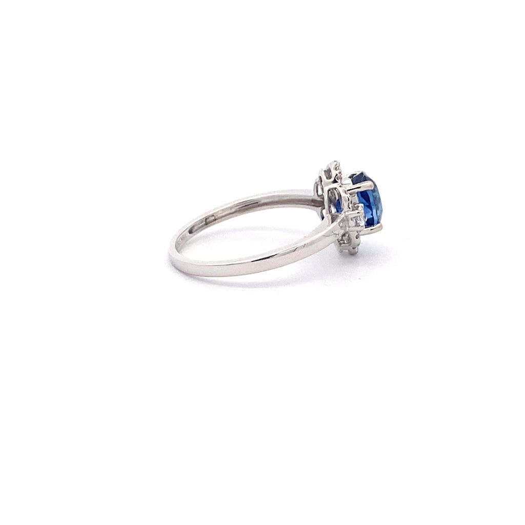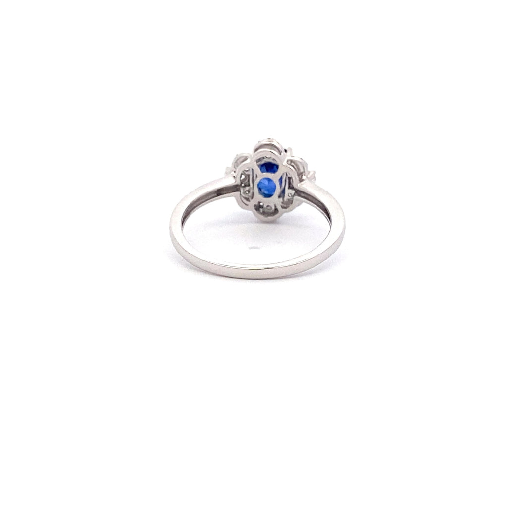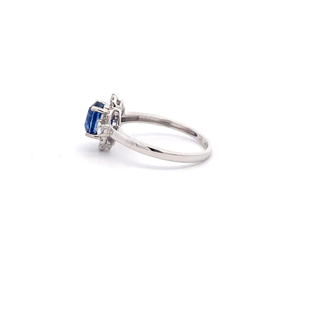 18ct White Gold, Oval Cut Blue Sapphire, Diamond Cluster Ring, 1.55ct