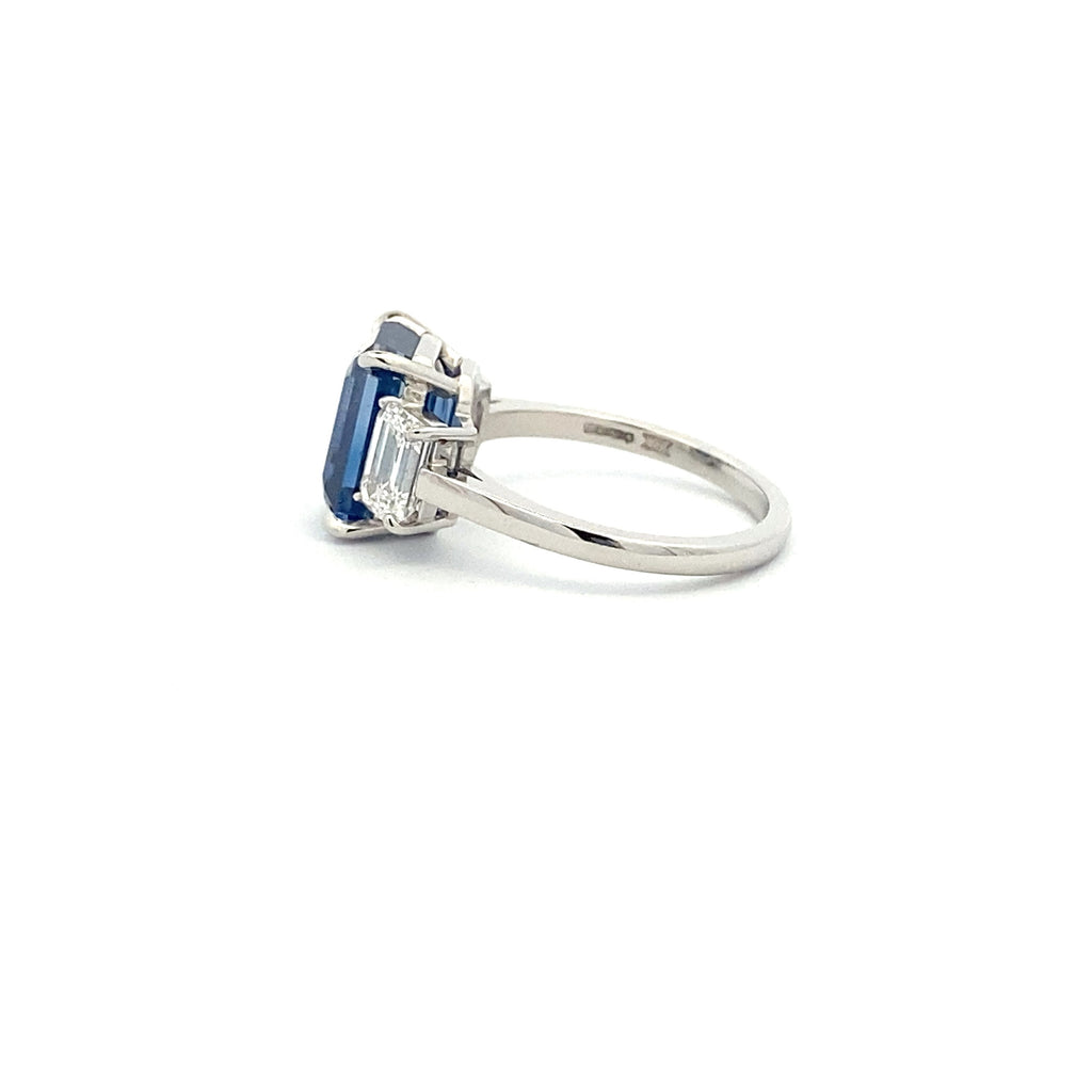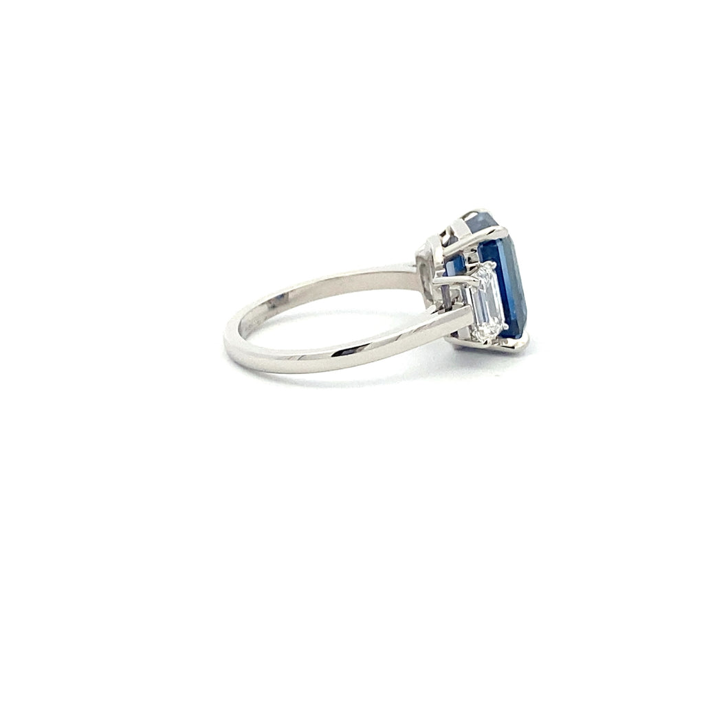 Platinum, Emerald Cut Blue Sapphire, Trilogy Ring, 5.32ct