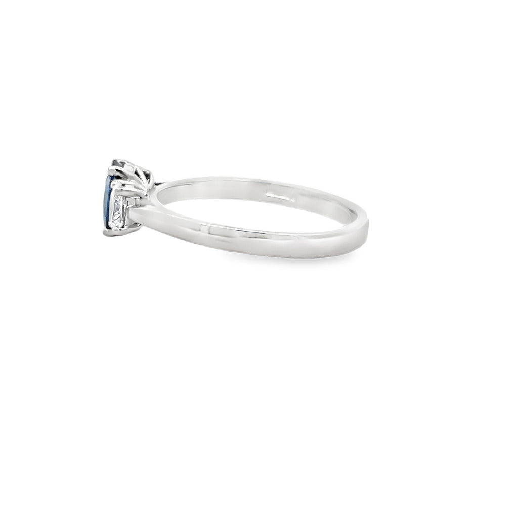 Platinum, Oval Cut Blue Sapphire, Trilogy Ring, 0.73ct