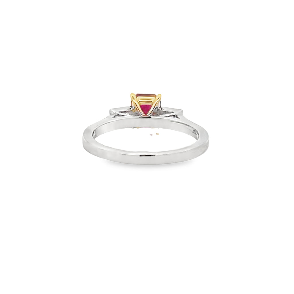 18ct Yellow Gold & Platinum, Emerald Cut Ruby, Baguette Shoulder Ring, 1.09ct