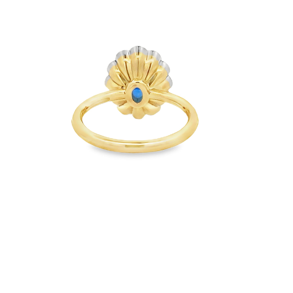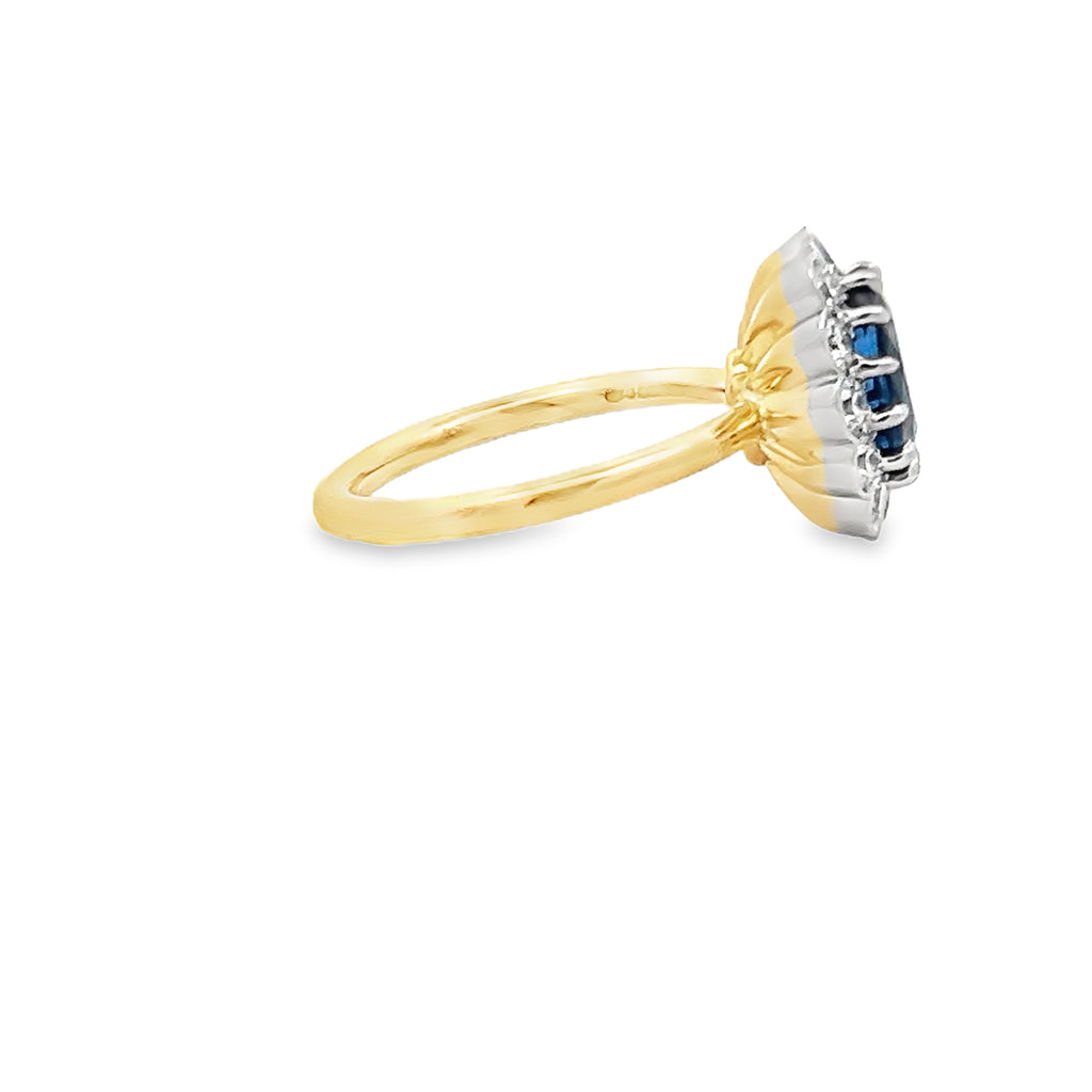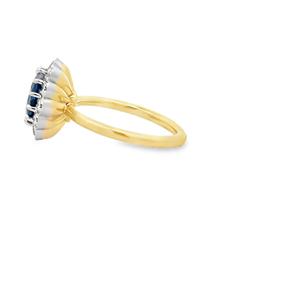 18ct Yellow Gold & Platinum, Oval Cut Blue Sapphire, Diamond Cluster Ring, 2.49ct