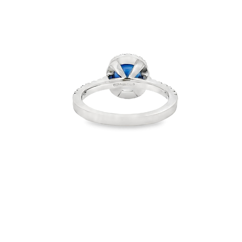 A Refined 2.02ct Cushion Cut Sapphire, Set in a Timeless Platinum Legacy Mount with Micro Set Diamond Detailing.