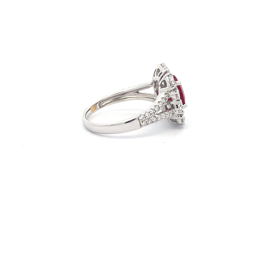 18ct White Gold, Oval Cut Ruby, Split Shoulder Cluster Ring, 1.63ct