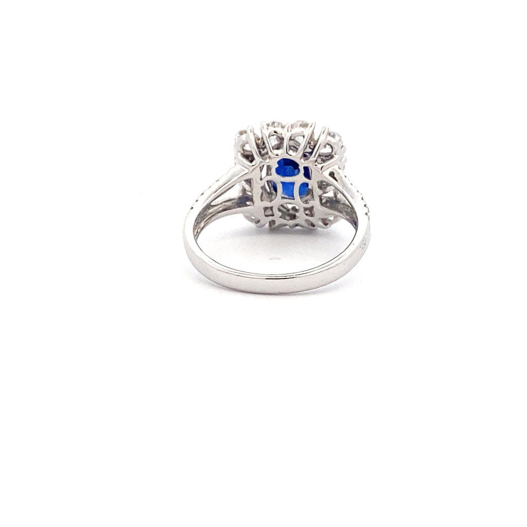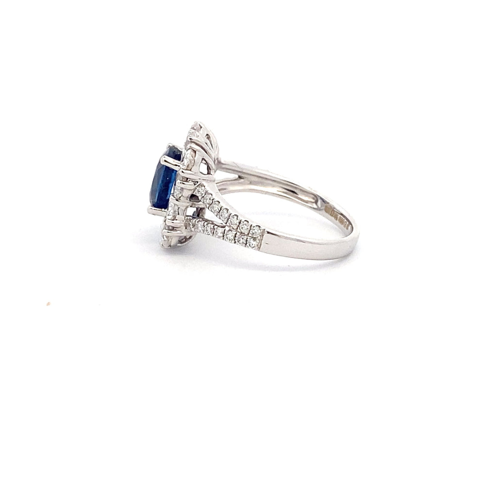 18ct White Gold, Oval Cut Blue Sapphire, Micro Set Shoulder Cluster Ring, 2.36ct
