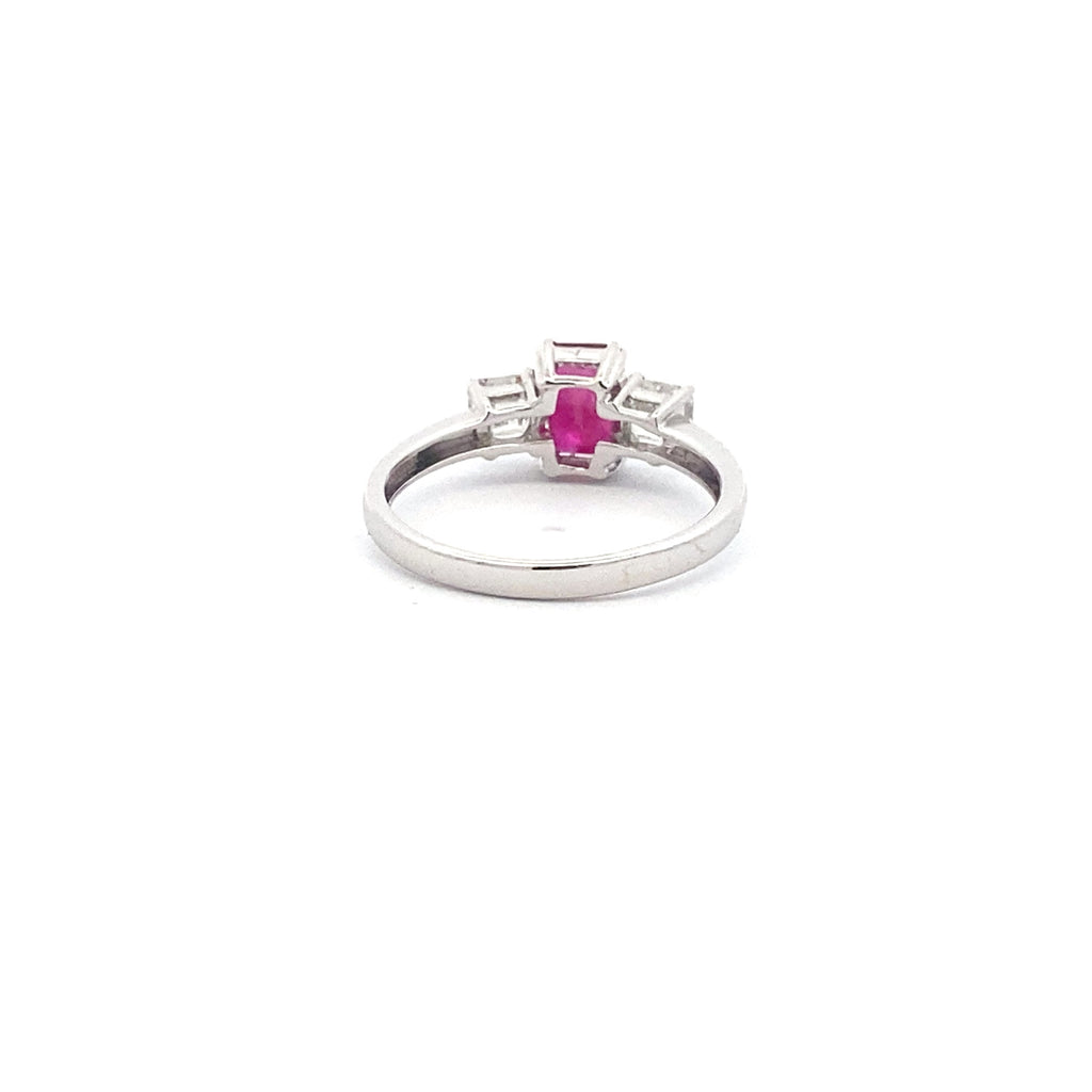 18ct White Gold, Emerald Cut Ruby, Trilogy Ring, 1.00ct
