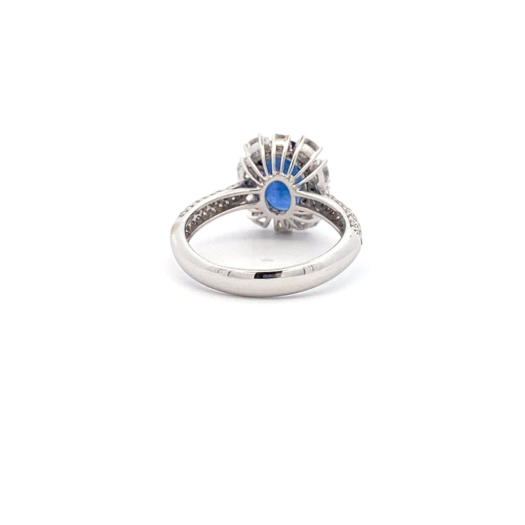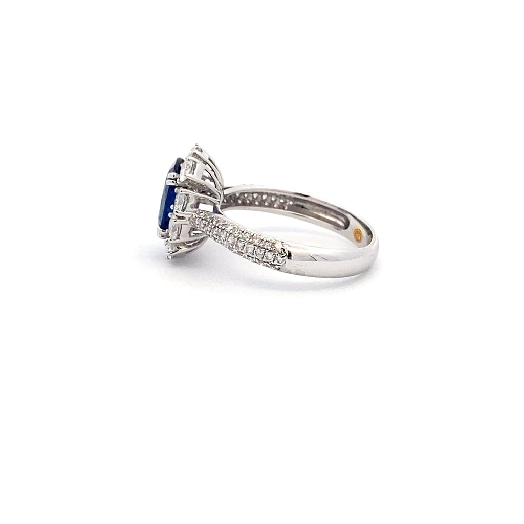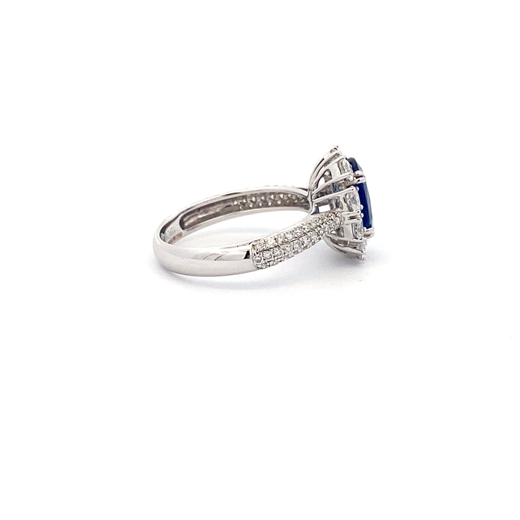 18ct White Gold, Oval Cut Blue Sapphire, Pave Set Shoulder Cluster Ring, 2.09ct