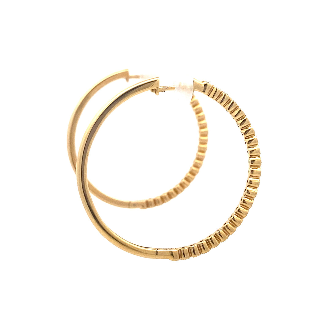 18ct Gold Round Brilliant Cut Diamond Rub-Over Hoop Earrings