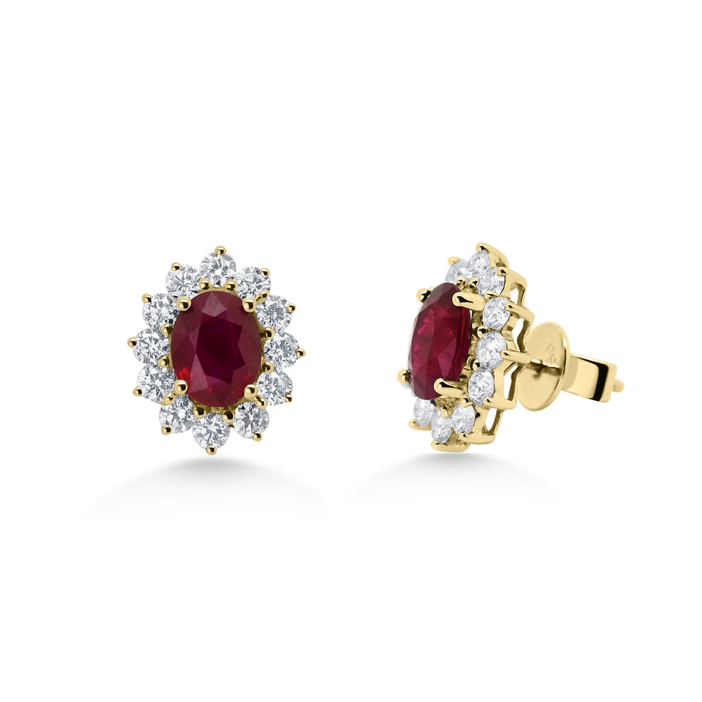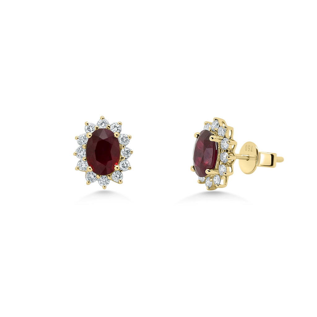 18ct Gold Oval Cut Ruby Cluster Earrings