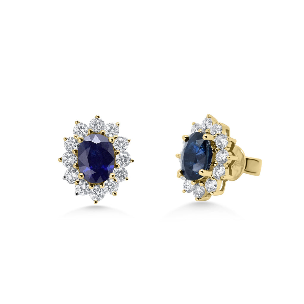18ct Gold Oval Cut Sapphire Cluster Earrings