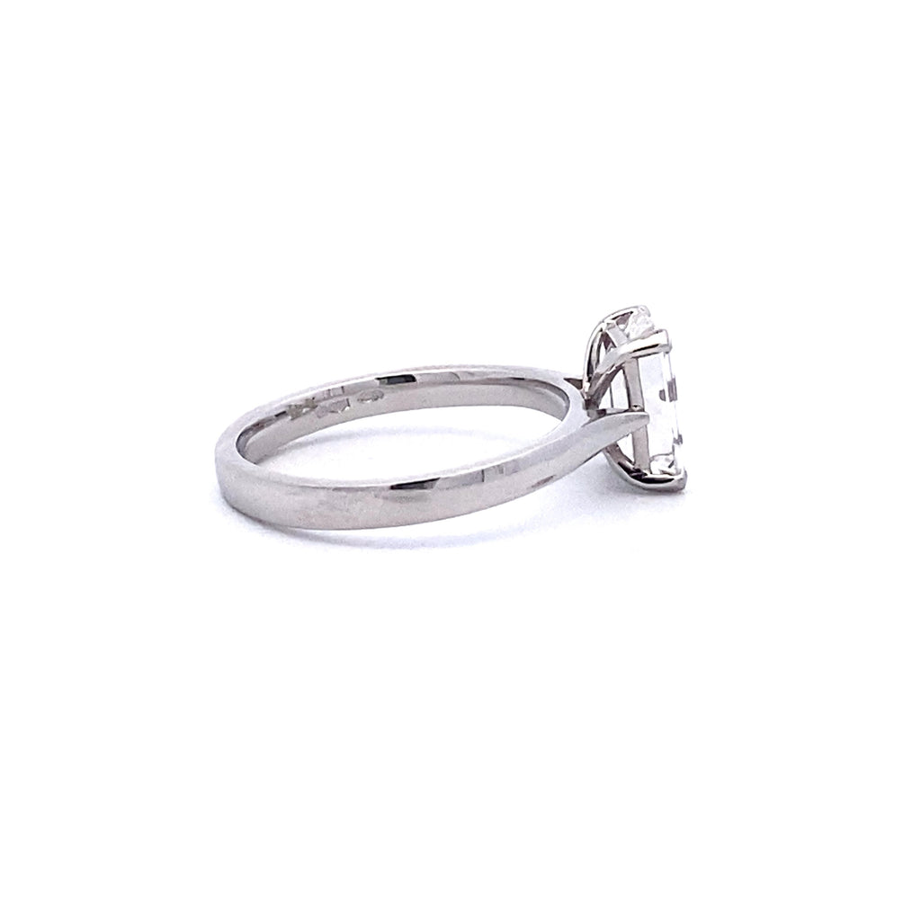 Pre-Owned Emerald Cut 1.62ct F VVS2 Platinum 4 Claw Wedfit Single Stone Ring