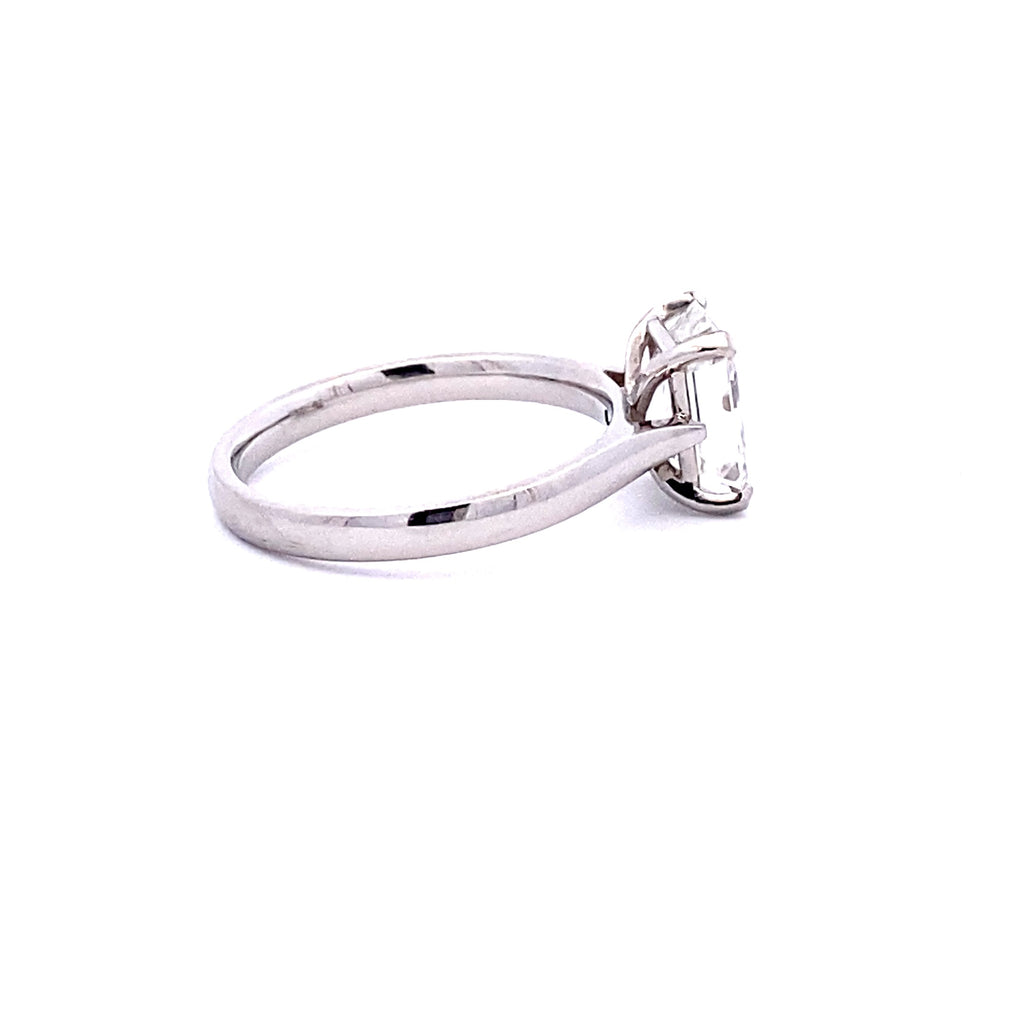 Enquire NowThis Classic Engagement Ring is set with one Emerald Cut 2.13ct F VVS2 Diamond, Accompanied with a GIA Certificate. The Elegant Cut of the Diamond is Highlighted in the Design of this Platinum Ring.