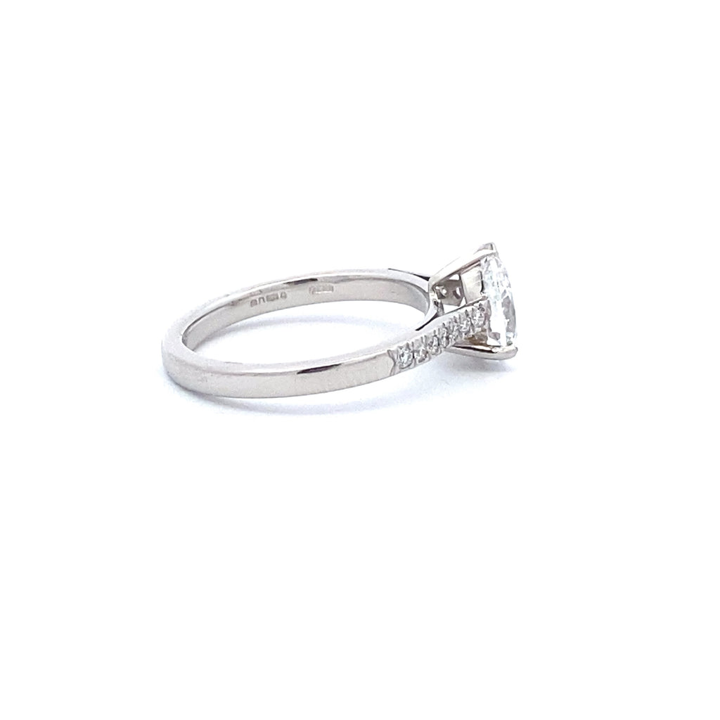 Pre-Owned Pear Shape 1.00ct D VS1 Platinum 3 Claw Micro Set Shoulder Ring