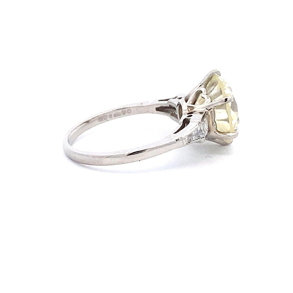 Enquire NowThis Exquisite Ring is set with One Round Brilliant Cut Diamond 5.98ct L VVS2, accompanied with a EDR Certificate. Channel Set Down Each Shoulder are Princess and Baguette Cut Diamonds, with a Total Carat Weight of 0.50ct.