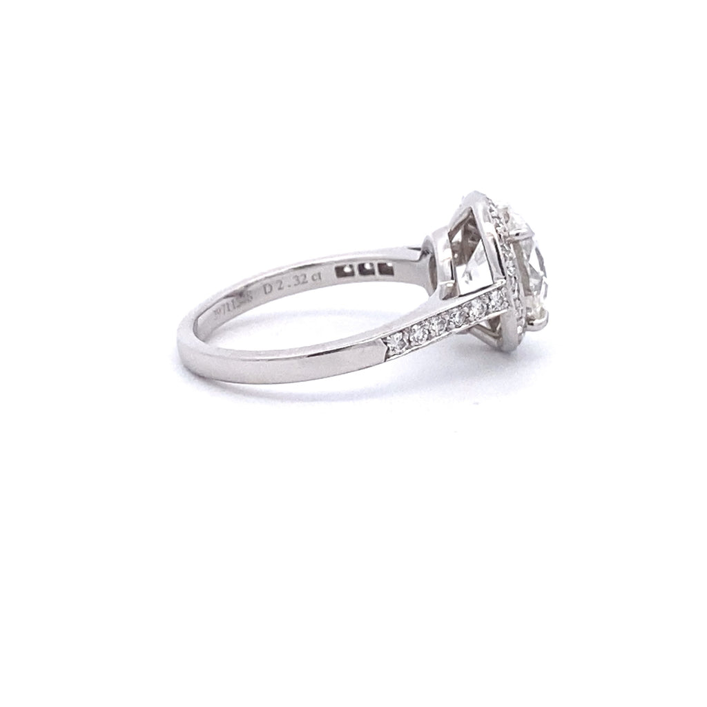 Enquire NowThis Beautiful Tiffany & Co Ring is set with one Round Brilliant Cut Diamond 2.32ct G VVS1 accompanied with a GIA Certificate. Surrounding the Centre Stone are Additional Round Brilliant Cut Diamonds that Elegantly Showcase the Stunning Diamond.