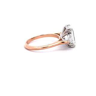 Pre-Owned Emerald Cut 3.00ct G VVS1 18ct Rose Gold & Platinum Claw Set 3 Stone Ring