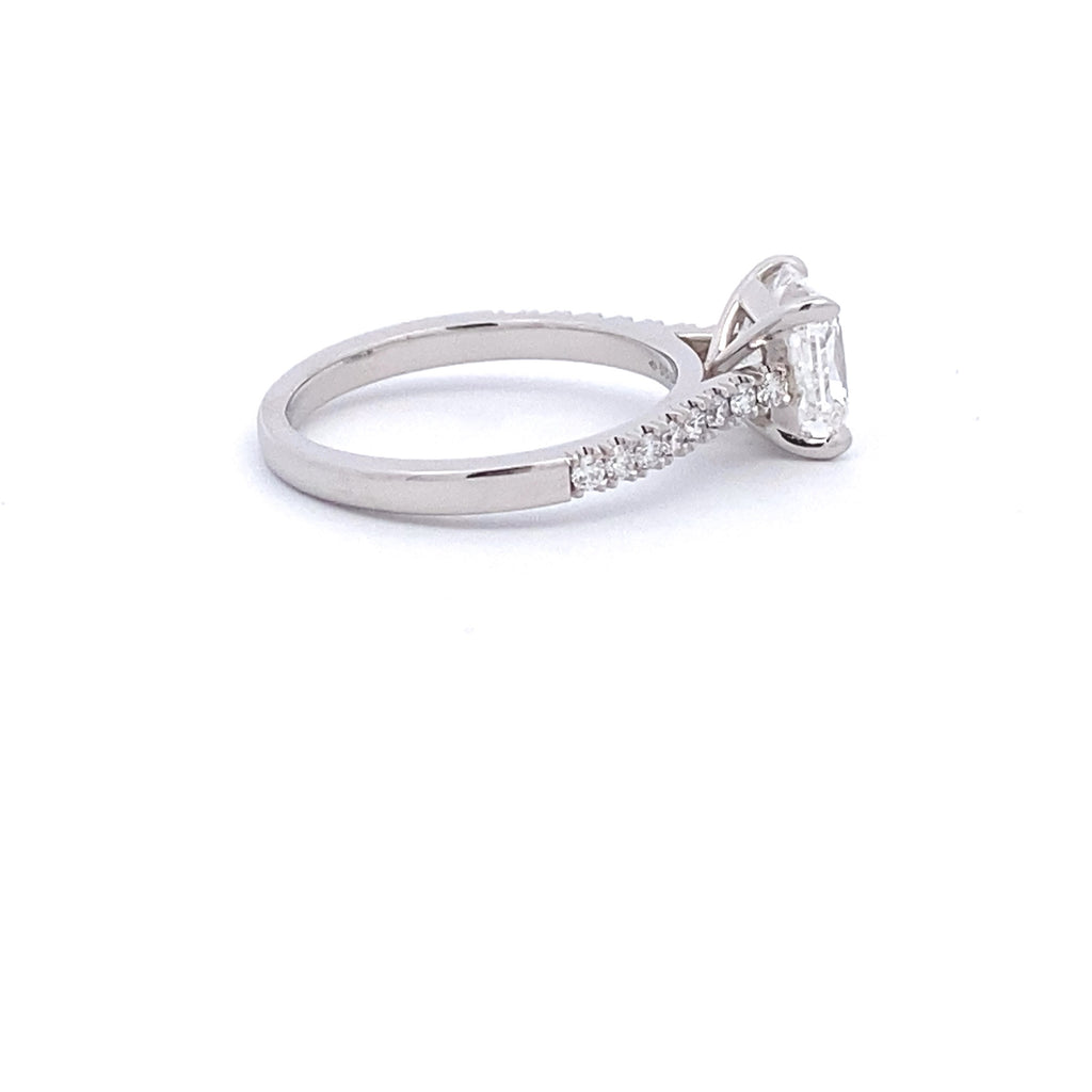 Enquire NowThis Elegant Ring is set with one Radiant Cut Diamond 2.01ct F VS2, accompanied with a GIA Certificate. The Facets on a Radiant Cut are Cut in a similar way to a Round Diamond, Creating the Appearance of an effervescent Sparkle.